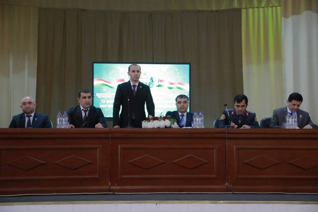 Дар чорабинӣ муовини раиси шаҳри Бӯстон Мамнур Нурзода, муовини прокурори шаҳр Далер Маҳмадализода, намояндаи шуъбаи Кумитаи давлатии амнияти миллии Ҷумҳурии Тоҷикистон Муҳаммадрозиқ Акбаров, ёрдамчии раиси суди шаҳр Насиб Шарифзода, корманди шуъбаи Вазорати корҳои дохилии Ҷумҳурии Тоҷикистон дар шаҳри Бӯстон Иноятулло Бобоназарзода ва ректори Донишкадаи кӯҳию металлургии Тоҷикистон Махмадалӣ Бахтиёр Набӣ иштирок ва суханронӣ намуданд.