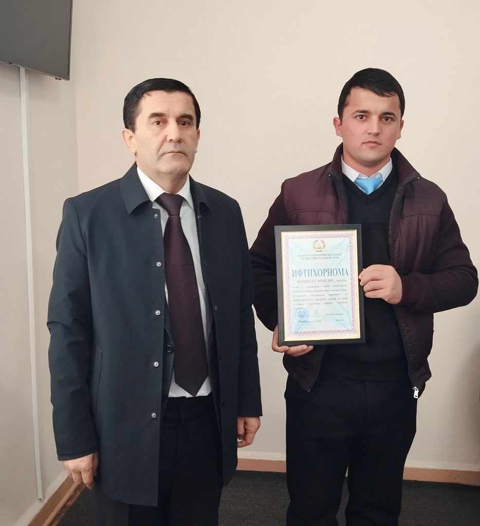 Ректори Донишкадаи кӯҳию металлургии Тоҷикистон профессор Бахтиёр Маҳмадалӣ иштирокчии озмуни ҷумҳуриявии “Илм- фурӯғи маърифат” магистранти кафедраи фанҳои табиӣ-илмӣ, олими ҷавон ва умедбахш Қозизода Муҳсинро барои талоши доимӣ, навиштани мақолаҳои илмӣ, хониши хубу аъло, ширкат дар озмунҳои ҷумҳуриявӣ ва иштироки фаъол дар чорабиниҳои ҷамъиятӣ бо Ифтихорномаи Вазорати маориф ва илми Ҷумҳурии Тоҷикистон қадрдонӣ намуд.